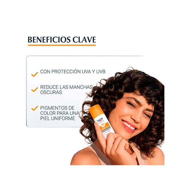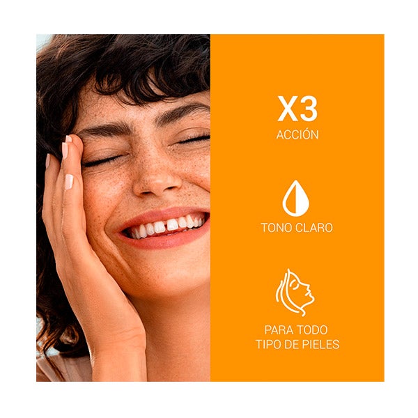 Fotoprotetor com cor clara FPS 50+, formulado para pessoas com manchas de hiperpigmentação ou com risco de sofrê-las, para reduzi-las e prevenir seu aparecimento.