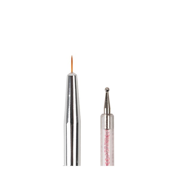Com dupla ponta e toque glitter, este pincel é perfeito para a decoração das unhas.