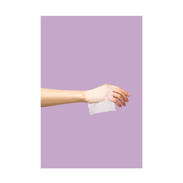 As folhas de celulose vegana contêm centella asiática e alantoína calmantes e hidratantes, que se sentem suaves e macias na pele.