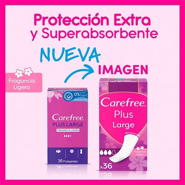 Os protetores diários Plus Large da Carefree estão desenhados para proporcionar uma proteção duradoura e 12 horas de proteção contra o odor.