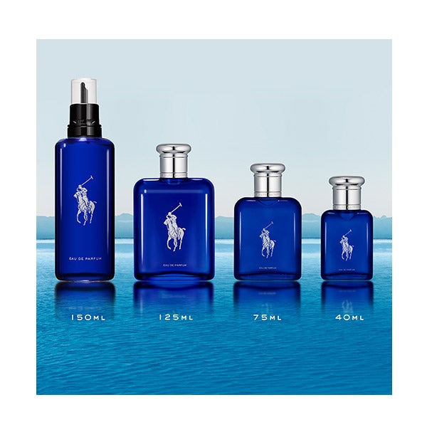 O frasco de Polo Blue encarna a energia e o poder do mar através de sua cor azul cobalto. Ao mesmo tempo, representa o terno azul marinho, uma das mais míticas criações da grife de moda Ralph Lauren e seu luxuoso acabamento em tecido italiano. Essa peça icônica, tal como Polo Blue, são essenciais para o esportista sofisticado, conferindo-lhe um visual elegante e atemporal a qualquer homem.