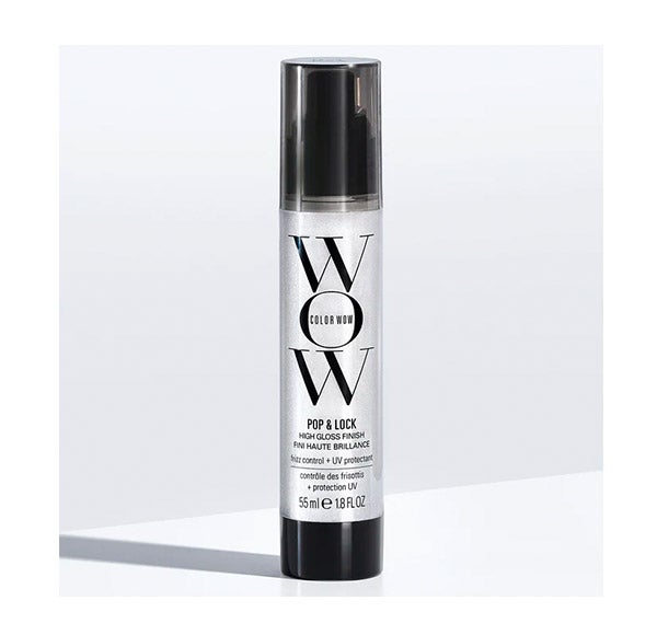 O soro brilhante suaviza o frizz, sela as pontas duplas, evita que a cor desbote, tem proteção contra os raios UV e é um potente protetor térmico.