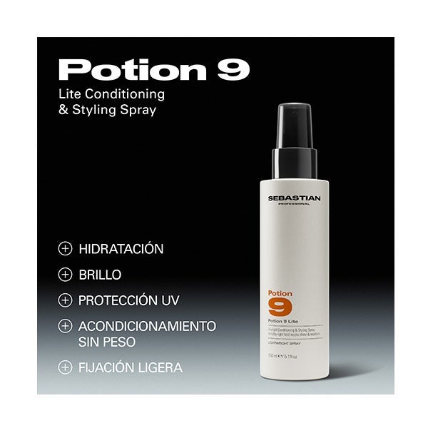 O tratamento de styling em spray Potion 9 Lite de Sebastian Professional é um condicionador em spray leve e sem enxágue que proporciona hidratação, brilho, proteção UV e fixação suave. Ideal para cabelo fino e versátil para o penteado, no cabelo úmido ou seco.