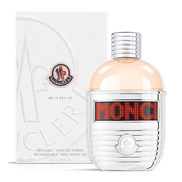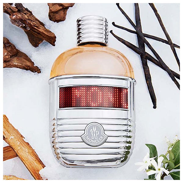É exibido em um frasco único inspirado nas garrafas de montanha, vestido com capa e tampa prateadas. Um eco às origens montanhesas de Moncler e à sua icônica jaqueta.