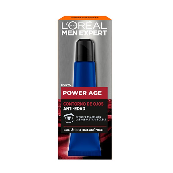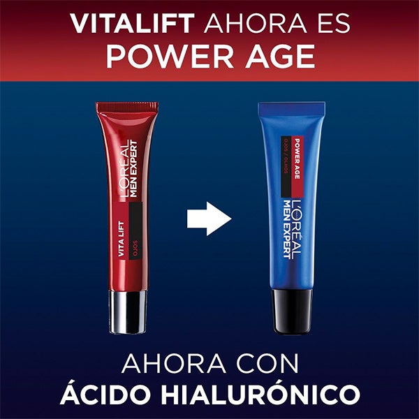 Dê à sua pele o poder de um envelhecimento melhor com L'Oréal Men Expert POWER AGE contorno de olhos anti-idade com ácido hialurônico.