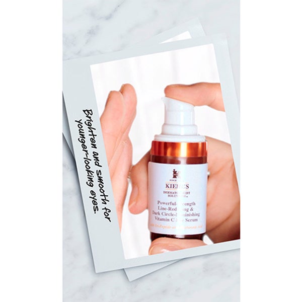 O contorno de olhos Powerful Strength Line Reducing Concentrate Eye de Kiehl´s com vitamina C a 10,5% ajuda a reduzir a aparência das linhas de expressão e pés de galinha, e proporciona luminosidade instantânea à área do contorno dos olhos. Melhora visivelmente a aparência de olheiras com o tempo e graças à sua fórmula melhorada reduz a aparência de bolsas.