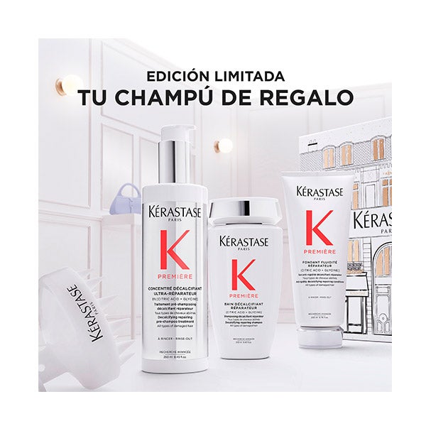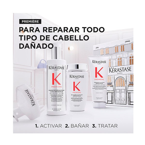 • Concentré Décalcifiant Ultra-Réparateur de 250 ml O primeiro tratamento pré-shampoo descalcificante com dupla ação reparadora para todos os tipos de cabelo danificado.