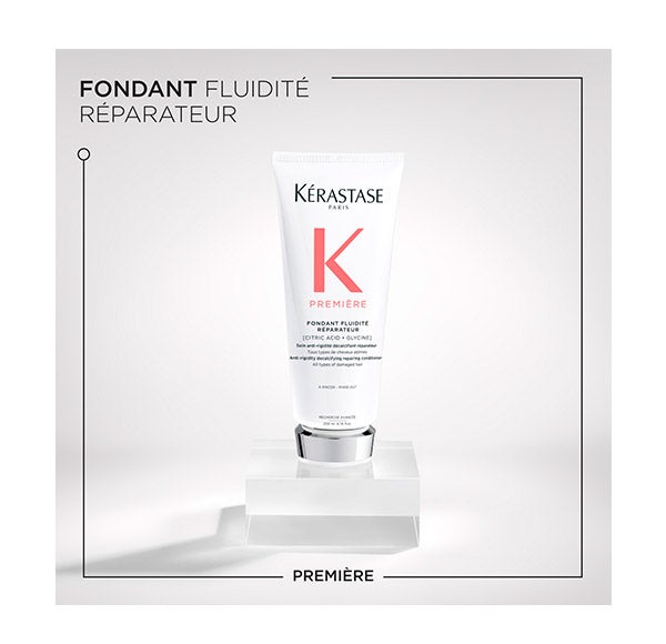 Kérastase Fondant Fluidité Réparateur é um condicionador anti rigidez para cabelo danificado com uma fórmula leve que restaura instantaneamente a hidratação e a fluidez. Neutraliza a rigidez do cabelo, deixando-o forte e resistente ao dano. Além disso, proporciona um cabelo mais flexível, 64% mais suave e repara o dano com sua dupla ação reparadora, restaurando a suavidade, a hidratação e a força.