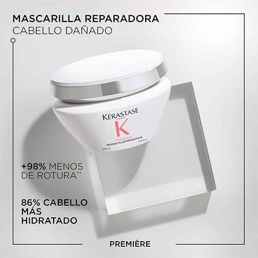 Masque Filler Réparateur de Première é um tratamento nutritivo reparador anti-quebra para todos os tipos de cabelo danificado e enfraquecido.