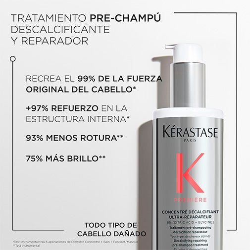 Premiado por los consumidores en los premios Victoires de la Beauté 2024-2025, Concentré Décalcifiant Ultra-Réparateur de Kérastase es la solución definitiva para la reparación en profundidad del cabello dañado.