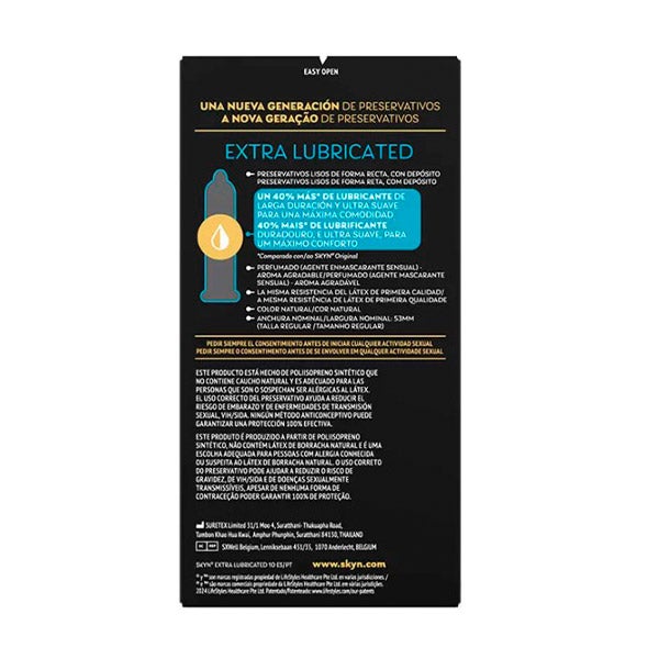 Skyn Extra Lubricated têm 40% mais de lubrificante ultra suave e de longa duração do que os nossos preservativos SKYN Original padrão.