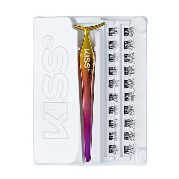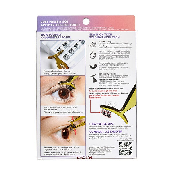 A aparência perfeita em um único passo? É possível com as imPRESS Falsies Cluster da KISS, que revolucionam completamente o seu jogo de cílios graças à tecnologia de pré-adesão: Um adesivo sensível à pressão já está aderido aos cílios artificiais, que se fixam imediatamente quando colados à linha dos cílios naturais e depois duram até 24 horas!