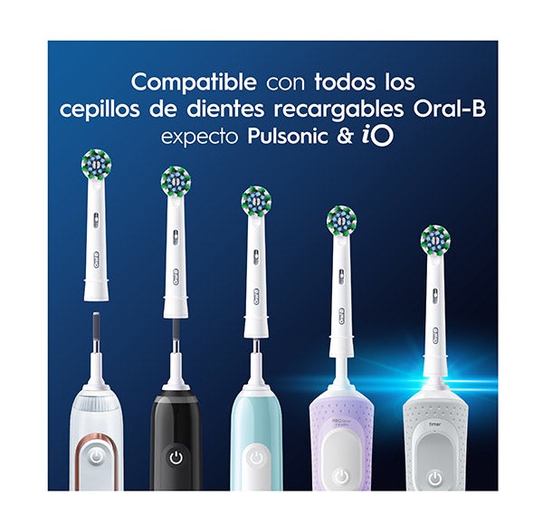 Ajuste garantido com escovas de dentes elétricas recarregáveis da Oral-B, exceto com as escovas de dentes iO e Pulsonic.