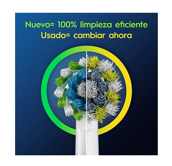 O indicador de uso da cabeça faz com que as cerdas mudem de verde para amarelo para lembrar você de quando deve trocá-la e manter 100% de eficácia na limpeza.