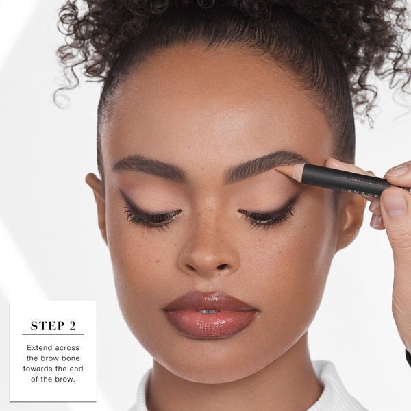 A ponta mais larga do lápis cobre perfeitamente a largura do osso da sobrancelha, proporcionando a quantidade ideal de iluminador.