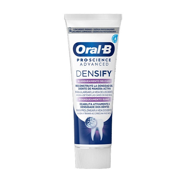 A pasta dentífrica Oral-B Pro-Science Densify aumenta a densidade do esmalte a cada escovação para manter seus dentes em boa condição.