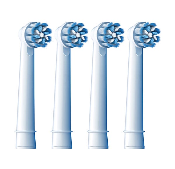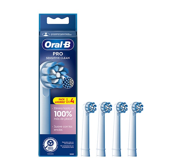 O Sensitive Clean, um dos cabeçais premium da Oral-B, inclui filamentos ultrafinos respeitosos com as gengivas combinados com filamentos normais tenazes contra a placa.
