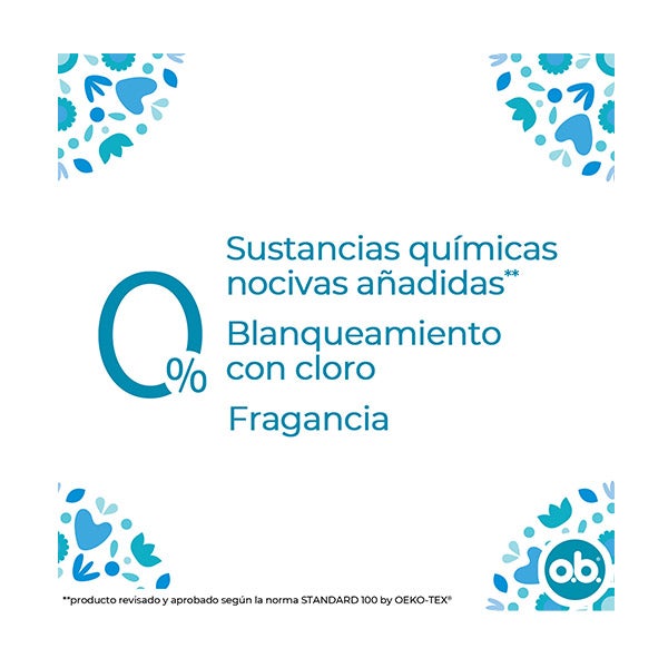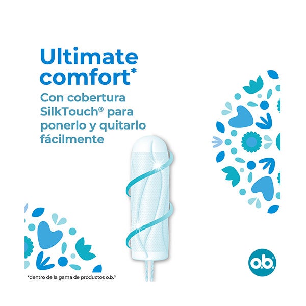 Experimente os OB Tampones ProComfort Normal com ranhuras Fluid-Lock para proteção contra vazamentos bloqueados, que guiam eficientemente o fluido para o interior do tampão.