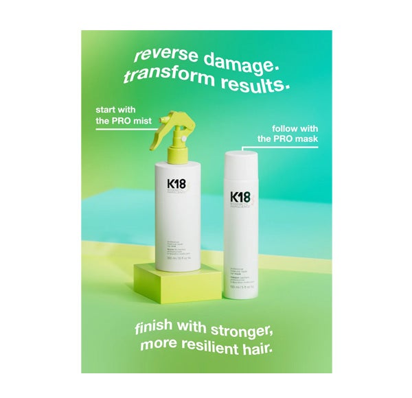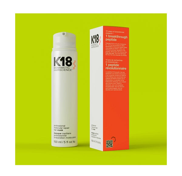 · K18PEPTIDE™ é um peptídeo desenvolvido pela biotecnologia que imita a estrutura do cabelo para reverter o dano ao reconectar cadeias polipeptídicas e ligações dissulfeto quebradas durante a descoloração, a coloração e os serviços químicos, e o calor*.