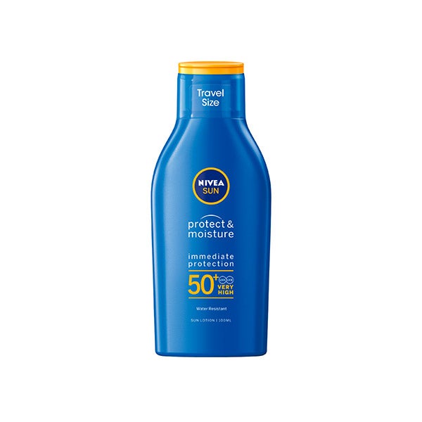 NIVEA SUN Protege & Hidrata Loção Solar Tamanho Viagem FP50+ protege a pele do exterior & interior. Oferece proteção contra os raios UVA/UVB, queimaduras e envelhecimento precoce da pele, além de estimular a proteção da pele desde o interior graças à Vitamina E, um poderoso antioxidante, que ativa o mecanismo de defesa da própria pele. Além disso, mantém a pele hidratada por 48h. Sua fórmula é resistente à água, 77% biodegradável e respeitosa com os oceanos ao estar livre dos filtros UV: Octinoxato, Oxibenzona e Octocrileno, além de estar livre de microplásticos. A embalagem é feita com 50% de plástico reciclado (garrafa e tampa).
