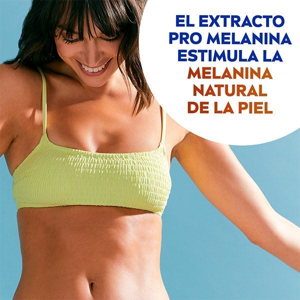 1. Doble efecto: protección de la piel & bronceado natural: - Protección eficaz e inmediata contra los rayos UVA/UVB, quemaduras y enevejecimiento prematuro de la piel. – Activador de la melanina – El extracto pro-melanina estimula el bronceado natural de la piel. No autobronceador.