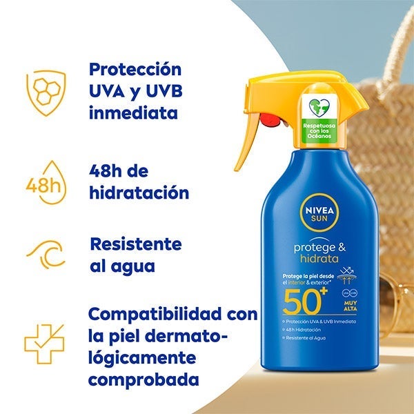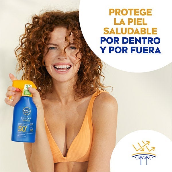 Su nueva fórmula no sólo protege con alta eficacia contra los rayos UVA y UVB, sino que gracias a sus ingredientes Pantenol y Glicerina contribuye a mantener el equilibrio de los niveles de hidratación reduciendo la pérdida de agua.
