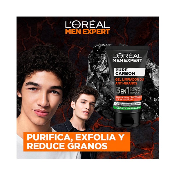 Gel Anti-Espinhas 3 em 1: purifica, esfolia, reduz espinhas. Enriquecido com minerais vulcânicos naturais conhecidos por suas propriedades absorventes. Com ácido salicílico conhecido pelo seu efeito esfoliante e com poderosos ingredientes ativos para ajudar a combater as espinhas.