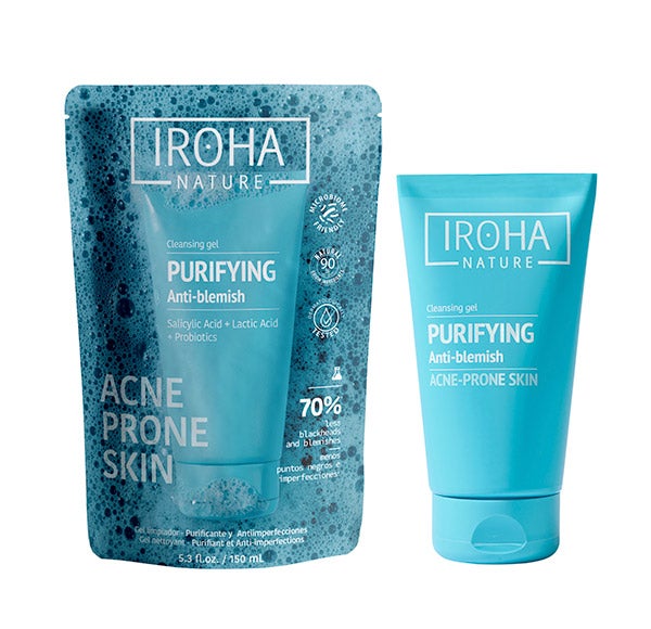 Limpiador Purificante Antiimperfecciones de Iroha Nature, un gel suave que limpia los poros en profundidad sin irritar la piel, disolviendo el sebo y células muertas acumuladas de su interior, haciendo que los poros sean menos visibles y reduciendo así los puntos negros y las imperfecciones. Su fórmula efectiva y altamente concentrada, con resultados probados y testada dermatológicamente, se transforma en una espuma rica y densa al contacto con el agua caliente para limpiar sin deshidratar ni engrasar la piel, evitando la sensación de tirantez y de sequedad y equilibrando el pH alterado.