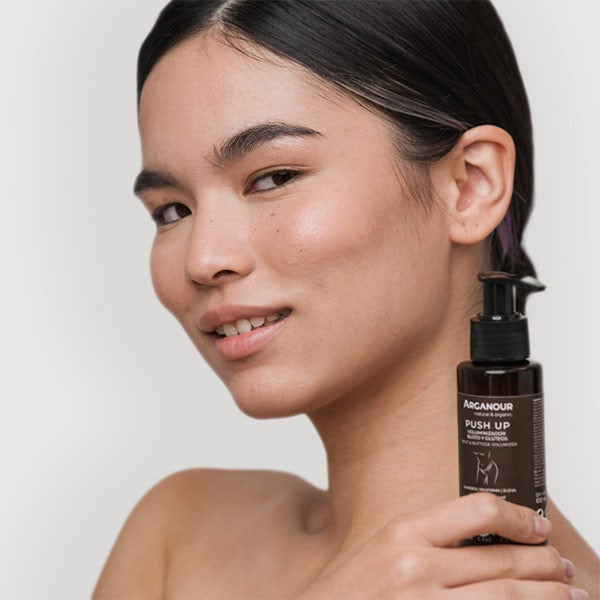 Glúteos mais firmes e suaves, até 3 cm de aumento, e busto mais volumoso e firme, com até um copo de aumento graças ao extrato de amora.