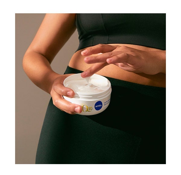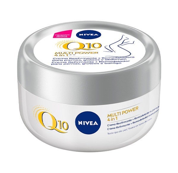 NIVEA Q10 MULTI POWER 4in1 Creme Reafirmante + Remodelador: reafirma as áreas mais difíceis como o ventre ou abdômen, as coxas e os glúteos em apenas 2 semanas, ajudando a devolver a firmeza à pele. A fórmula deste creme reafirmante, enriquecida com Coenzima Q10 e Extrato de Soja, estimula a produção de energia nas células da pele, melhorando visivelmente a silhueta. Além disso, sua fórmula de rápida absorção hidrata intensivamente a pele por mais de 24 horas, proporcionando uma sensação de pele suave e sedosa e melhorando sua elasticidade. Consiga uma pele visivelmente mais lisa e elástica nas áreas mais difíceis do seu corpo com este creme reafirmante. Compatibilidade com a pele dermatologicamente comprovada.