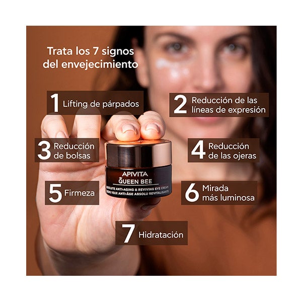 Ilumina, revitaliza o contorno dos olhos e ajuda a reparar os sinais visíveis causados pela fadiga, raios UV, poluição e até luz azul com Própolis de liberação controlada, Mel fermentado de APIVITA e infusão de rosa selvagem.