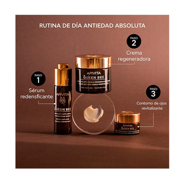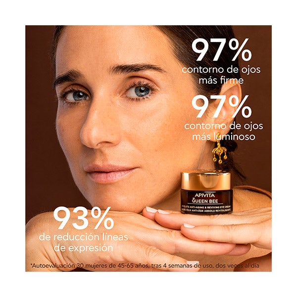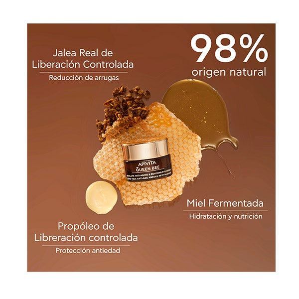 Este creme rico para o contorno dos olhos está formulado com duas tecnologias patenteadas de liberação controlada que oferecem à pele uma difusão de geleia real e própolis altamente concentrada, contínua e de longa duração:
