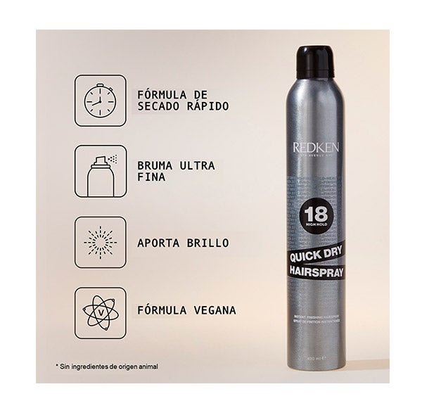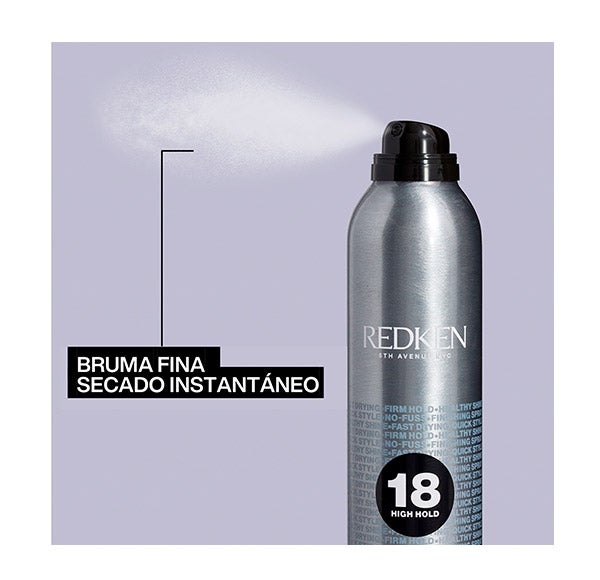 Spray de acabamento a seco. Acabamento efeito cardado, limpo e com brilho.