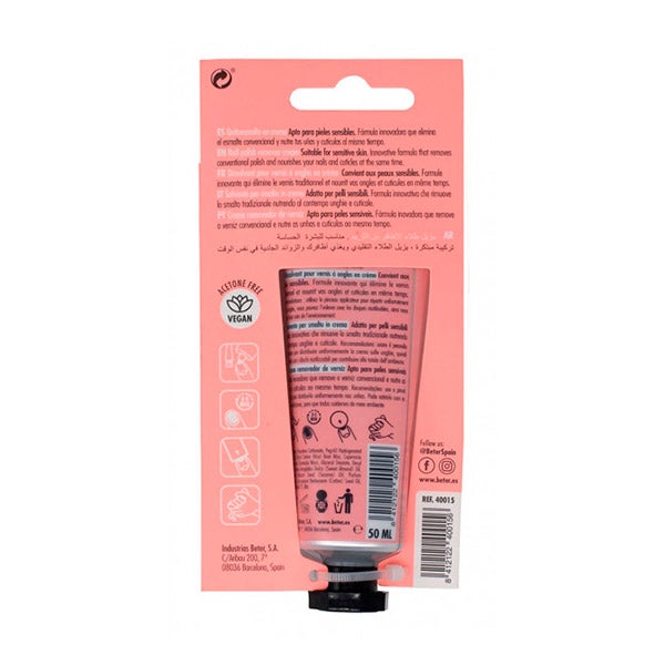 Removedor de esmalte em creme com uma fórmula inovadora que elimina o esmalte convencional e nutre as unhas e as cutículas.