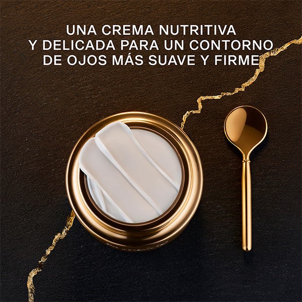 • Sua fórmula exclusiva fornece nutrientes à área dos olhos, retexturizando e suavizando a pele e cria um efeito transformador enquanto a regenera para infundir luz dourada
