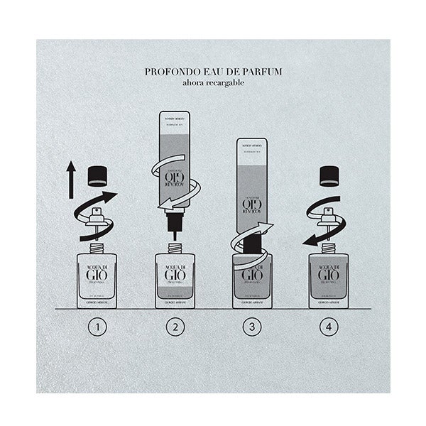 *Apenas recarregável nos formatos Acqua di Giò Profondo Eau de Parfum 50 e 100 ml