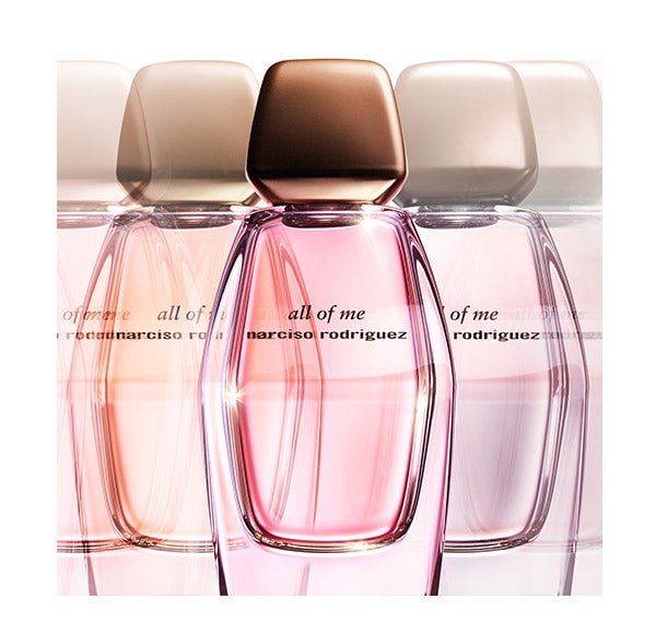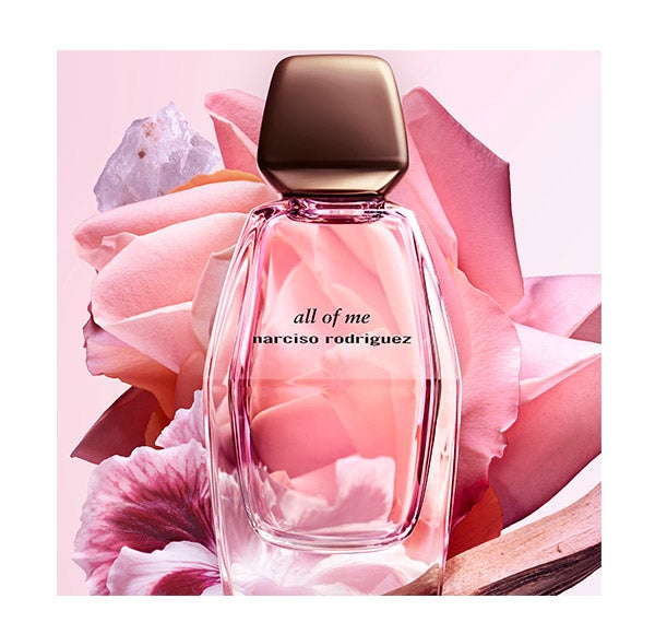 Uma celebração da individualidade e da autoexpressão, all of me reinventa o perfume floral fundindo a preciosa rosa centifolia com o ousado gerânio bourbon, uma nota que normalmente só se encontra em fragrâncias masculinas. Junto a este duo distintivo de rosa e gerânio, um acorde de leite de almíscares brancos que reinventa a icônica assinatura de Narciso Rodríguez. Seis notas diferentes de almíscar se misturam para criar um efeito de segunda pele, trazendo, cada uma, uma nova dimensão à multifacetada mistura de flores.