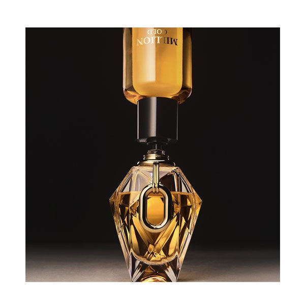 Million Gold é um perfume elegante e sofisticado feminino que se apresenta em um frasco dourado com vidro multifacetado, que magnifica o aroma que contém em seu interior. A fragrância está adornada com um acessório intimamente ligado à história da Maison: o icônico elo XL.