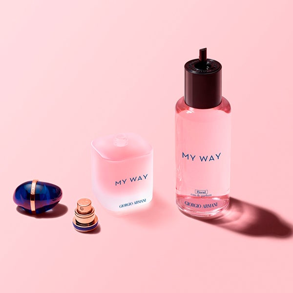 MY WAY FLORAL cria uma interpretação mais floral, fresca e multifacetada da assinatura floral contemporânea de MY WAY, já que a fragrância combina um buquê floral branco e florescente com notas verdes luminosas e frescas.