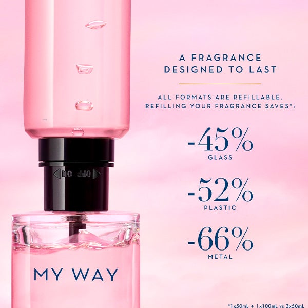 Giorgio Armani My Way Recarga Perfume de Mulher Eau de Parfum: My Way Giorgio Armani, o perfume floral de mulher de Giorgio Armani das descobertas e das conexões para uma mulher de espírito aventureiro, curiosa e autêntica, que aspira a ampliar seus horizontes e viver encontros significativos ao redor do mundo.
