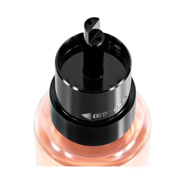 Do seu frasco retangular com tampa ovalada destaca-se especialmente a aliança que une ambas as partes como símbolo de eternidade. Por outro lado, também é impressionante o contraste estabelecido entre suas cores principais, rosa nude e preto, que representam emoção e força respectivamente.