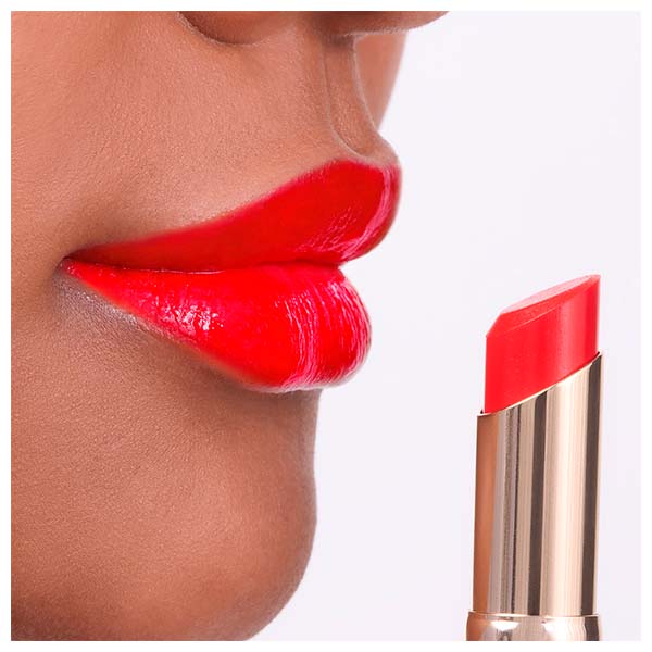 A textura cremosa se funde com os lábios formando um véu de hidratação que proporciona um acabamento perfeito e duradouro.