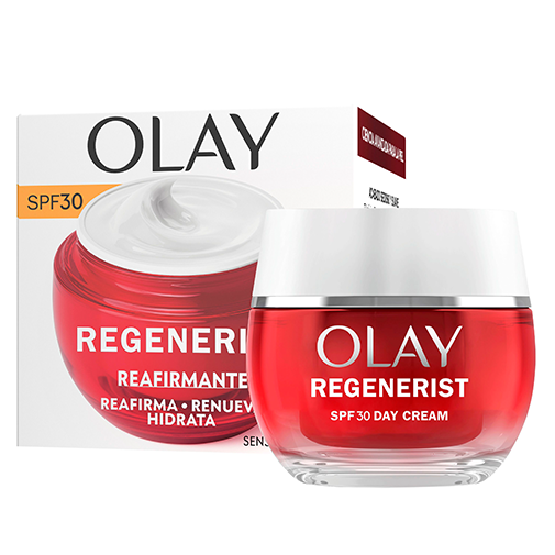 Protege a pele contra os danosos raios UVA e UVB com o creme de dia Olay Regenerist com SPF 30.