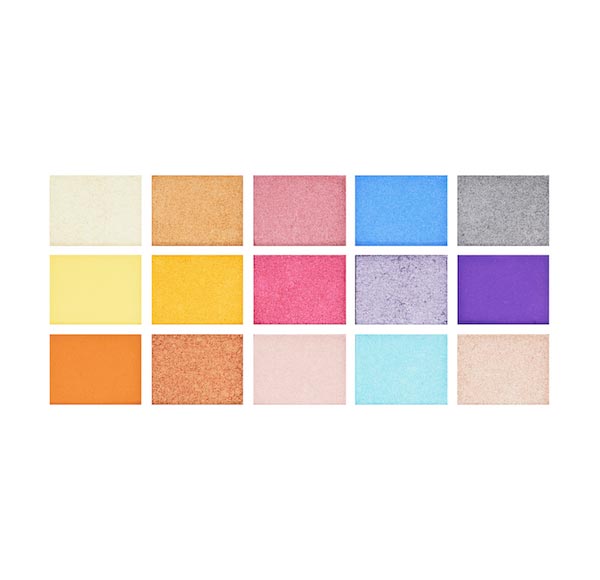 Esta paleta de 15 sombras contém uma seleção de tons mate suaves e cremosos e brilhos pigmentados para que você possa criar looks veranis vibrantes.