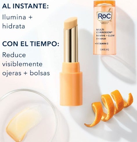 Glow Bálsamo Contorno de Olhos ilumina o olhar. As olheiras e as bolsas são visivelmente reduzidas graças ao complexo pendente de patente da Roc com vitamina C iluminadora e peptídeos reafirmantes. Este stick refrescante desliza de forma invisível com uma aplicação sem contato para resultados potentes: Em uma semana, 96% notou um olhar mais saudável e em 4 semanas o contorno dos olhos estava mais iluminado, com as olheiras e as bolsas visivelmente reduzidas.