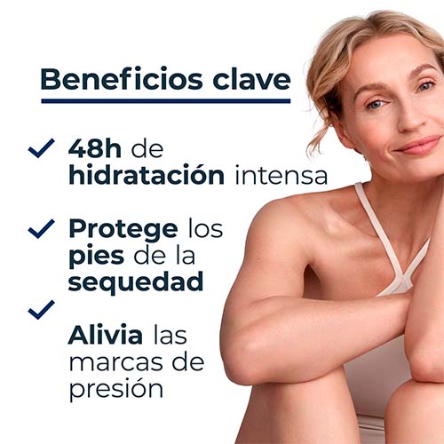 Obtenha uma reparação e hidratação intensiva dos pés secos e extremamente secos para deixá-los macios e lisos com este creme de reparação intensiva para pés com 10% de ureia da Eucerin: