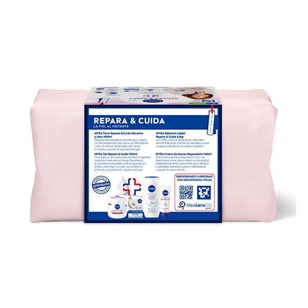 Este pack contém um Bálsamo Labial Repara & Cuida, um Pote Repara & Cuida com Glicerina e Ureia, um Gel Repara & Cuida e um Creme para Mãos Reparador.
