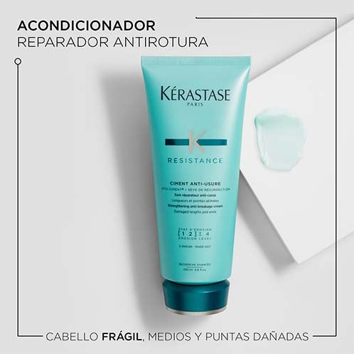 Ciment Anti-Usure é um condicionador concebido para cabelo enfraquecido e danificado. Seu efeito anti-quebra contribui para a reconstrução da fibra, para um cabelo mais forte e com maior resistência.
