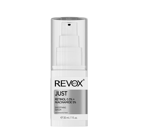 REVOX B77 JUST RETINOL 0,3% + NIACINAMIDA 5% é uma fórmula potente projetada pensando nas peles sensíveis e desidratadas.