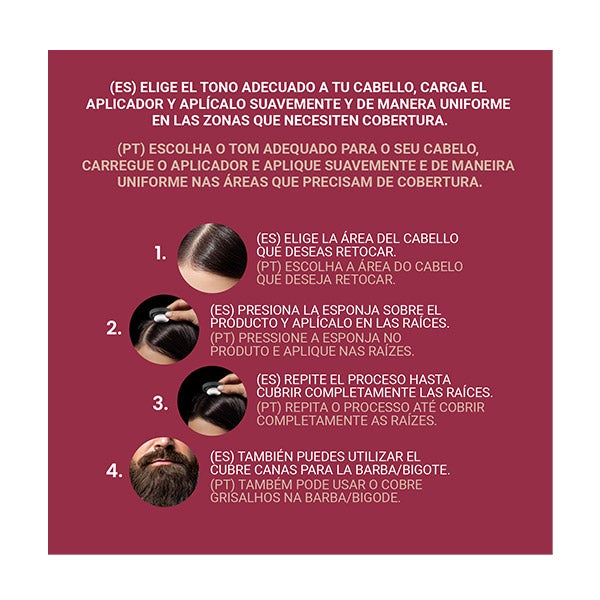 Seu prático formato compacto inclui um espelho e uma esponja aplicadora, permitindo que você retoque seu cabelo a qualquer momento e lugar com total comodidade. Perfeito para levar na bolsa e manter sua cor impecável.